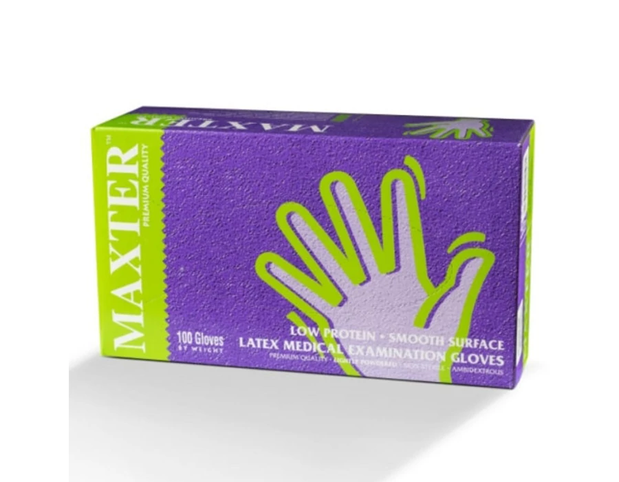 10 boxes of MAXTER latex gloves, powdered, white, 100 pieces, size S