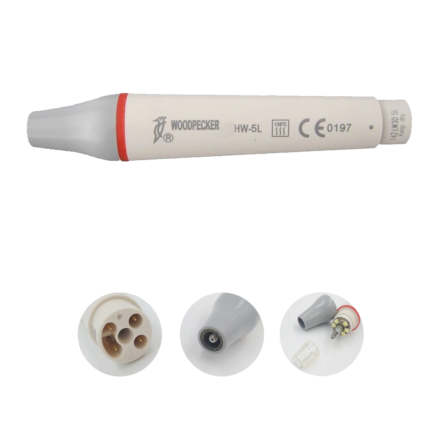It is bright (5 LED), autoclavable, butter-coloured, made of porcelain, from Woodpecker.