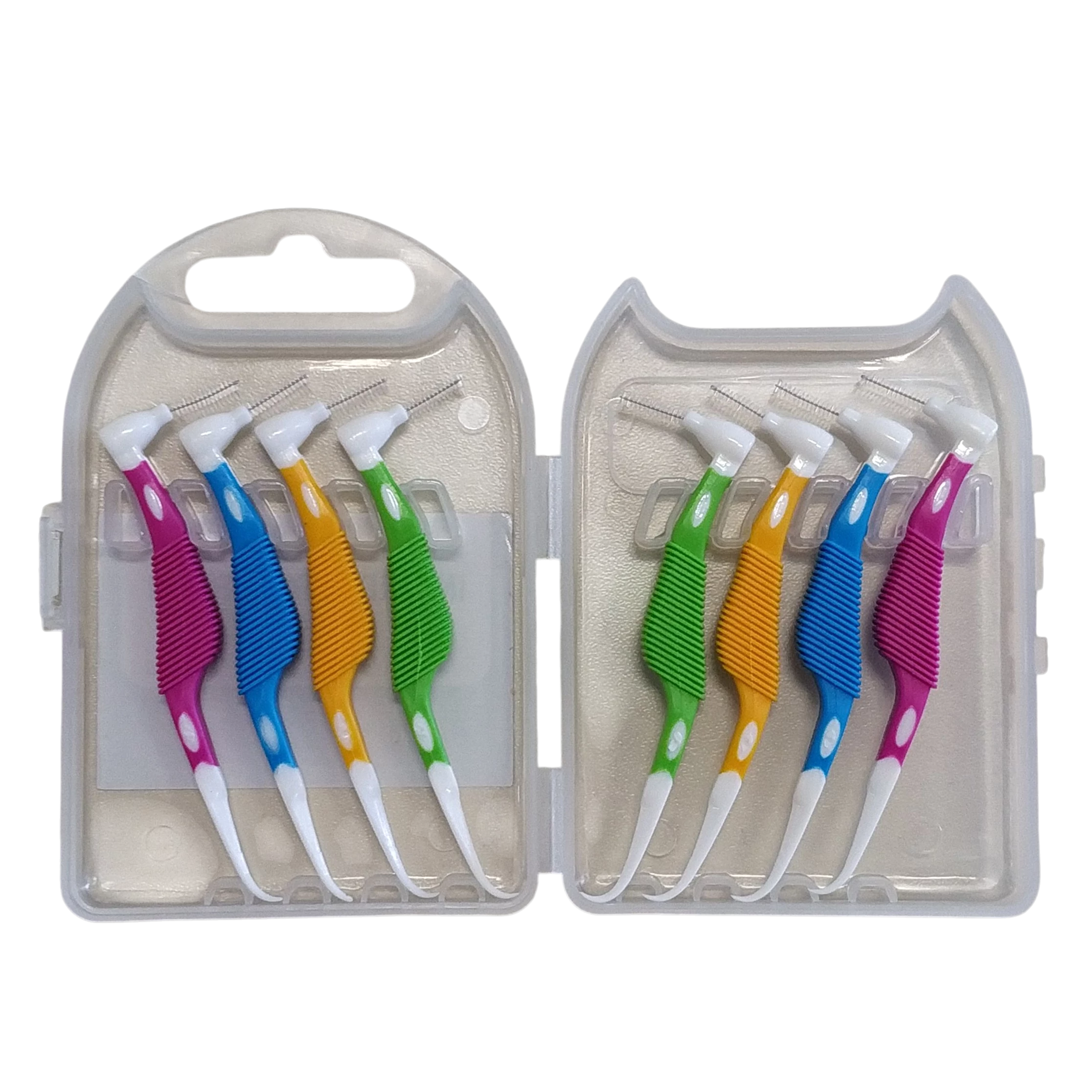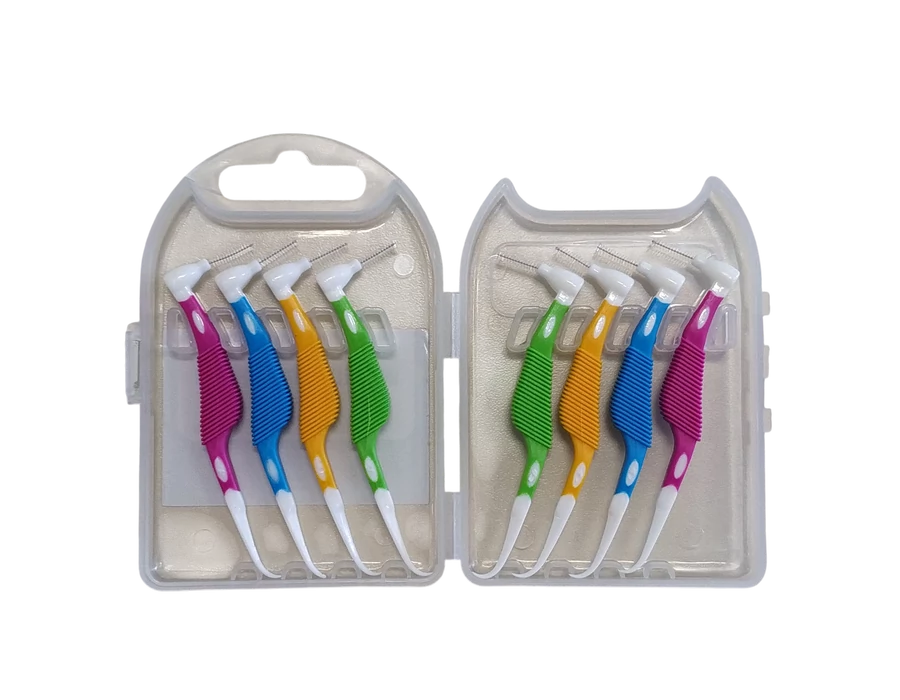 The cleaning head is bent at a right angle so that you can reach the spaces between the back teeth in particular.