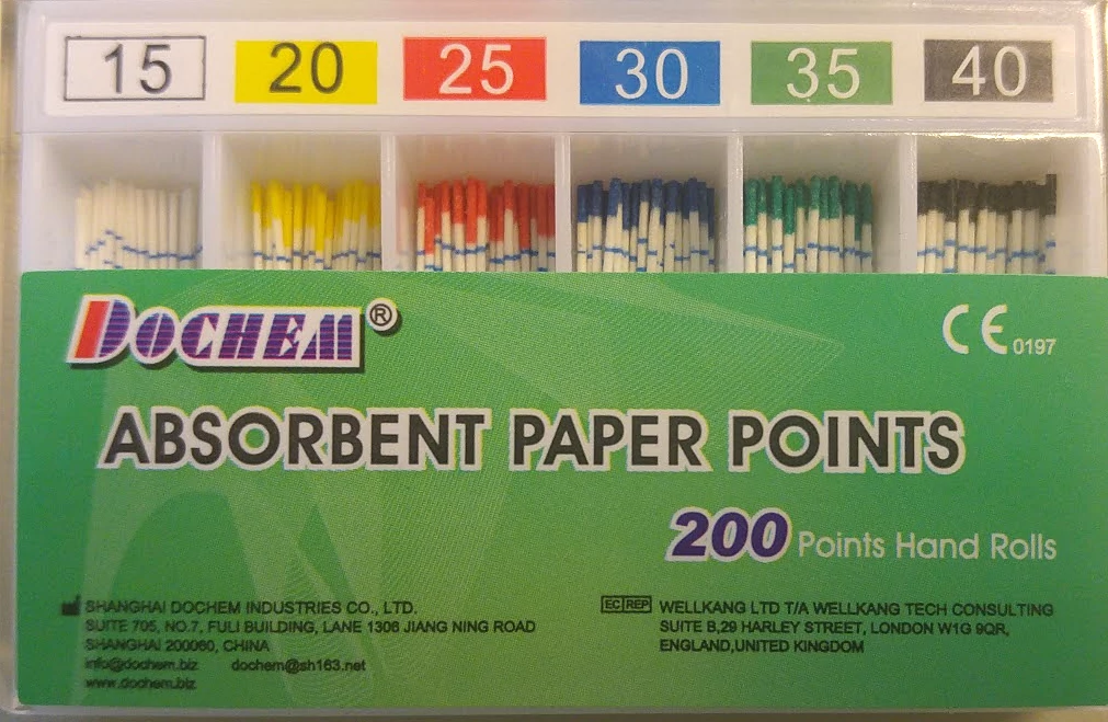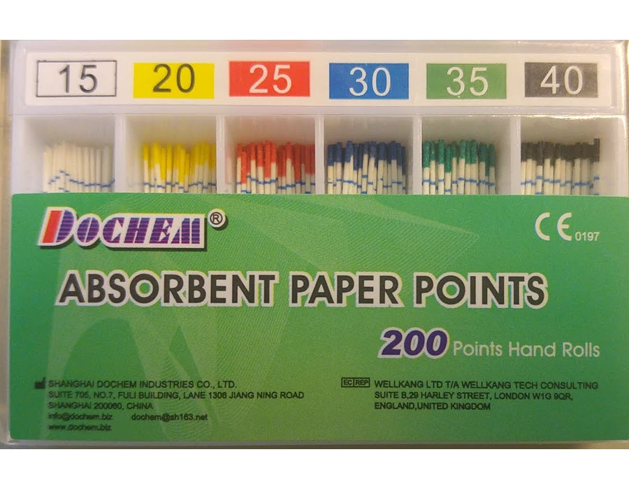 Paper points, length-coded, 200 pieces, #15-40 (Taper 0.02)