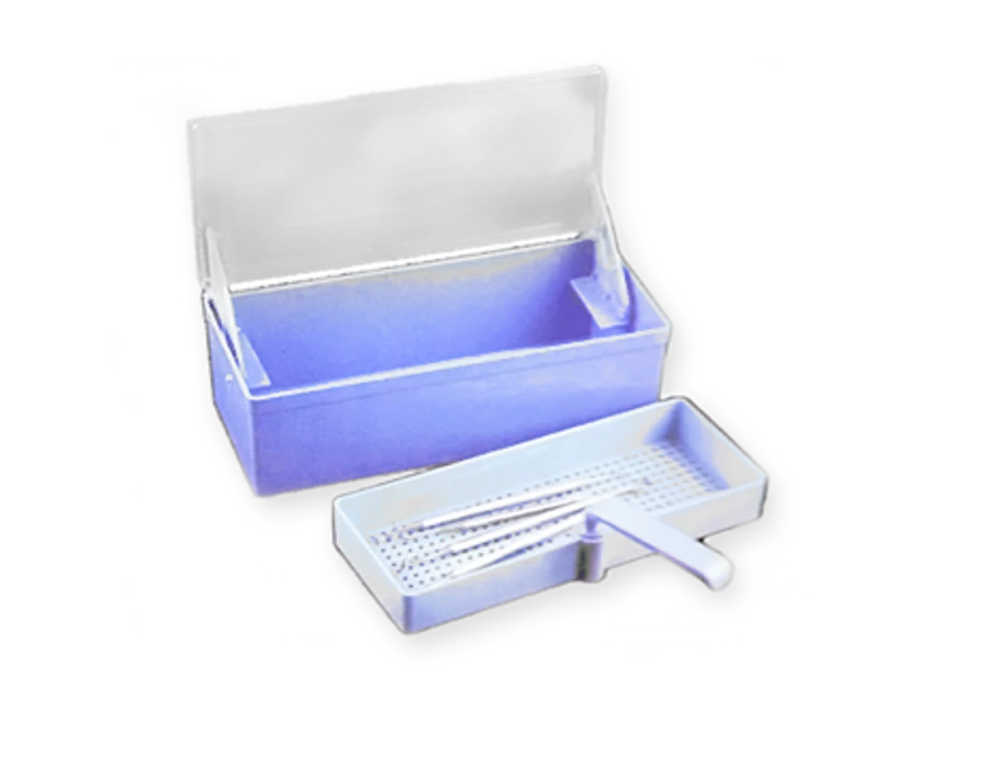 - When the instrument is closed, the basket lowers automatically and the instruments inside are immersed in the solution. When the lid is opened, the basket automatically lifts out to dry.