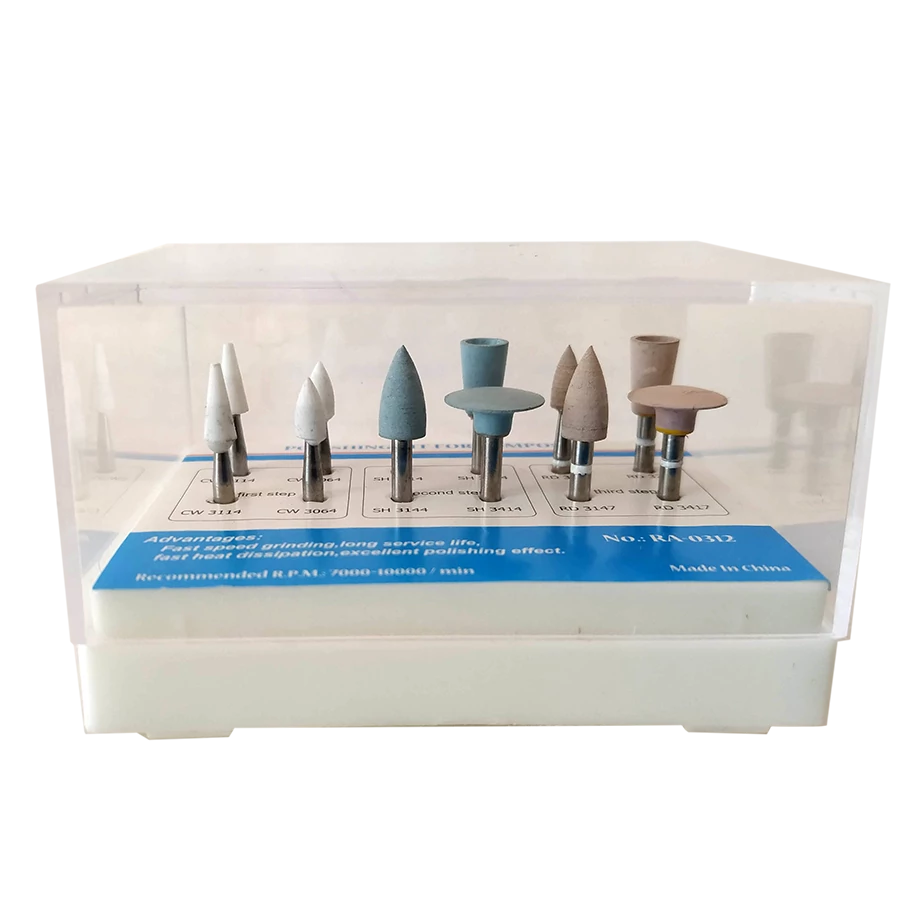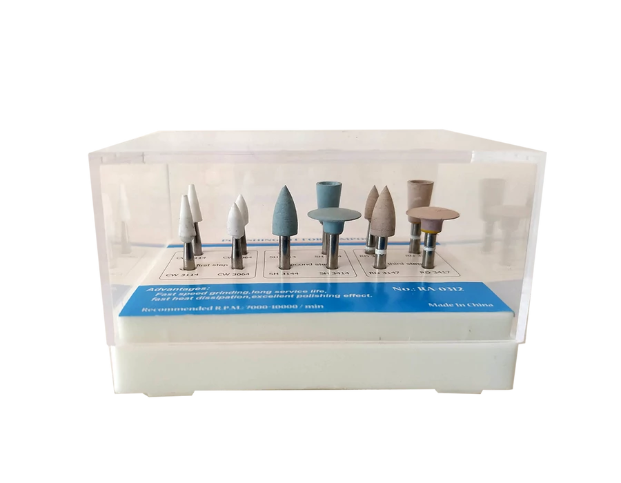- 4 pieces of softer, light brown, diamond-coated rubber (lens, 2 flames, funnel) THIS SET IS DIFFERENT FROM OUR PRODUCT 1G6050!